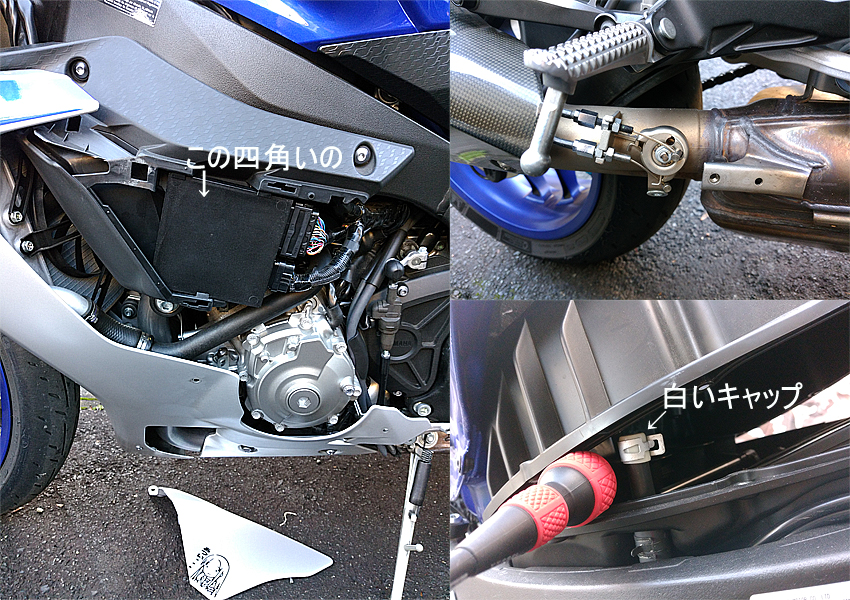 ECUは車体の横に付いてる四角いユニットでセッティングでいじるので取り外しやすい所に付いてる。